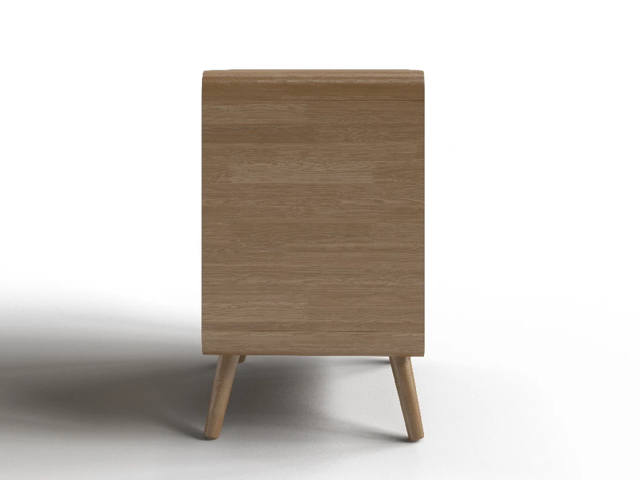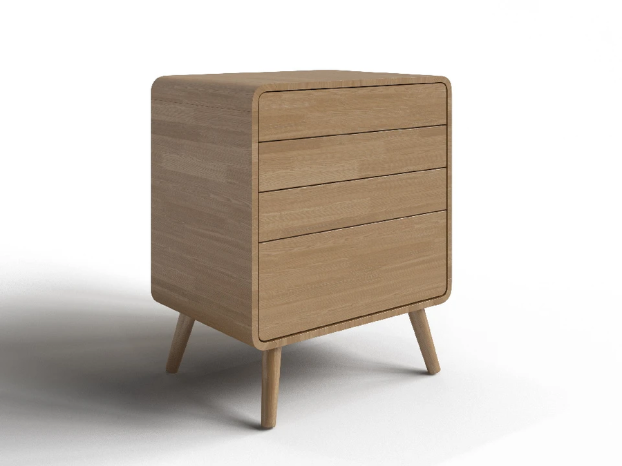 Айлин - комод для тех, кто ценит чистые линии и продуманные детали. Скруглённые углы корпуса, соединённые на шип, разноуровневые фасады и полное отсутствие ручек создают образ, который одинаково уместен в строгой скандинавской спальне и в мягком уютном интерьере. Открыть ящик - одно лёгкое нажатие.